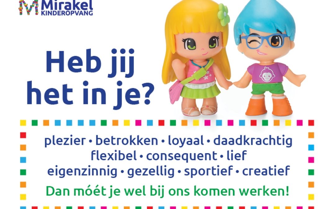 Geïnteresseerd? Bel met Hendrien Schaap op 020 – 661 3035 of mail mpersoneelszaken@kdvmirakel.nl